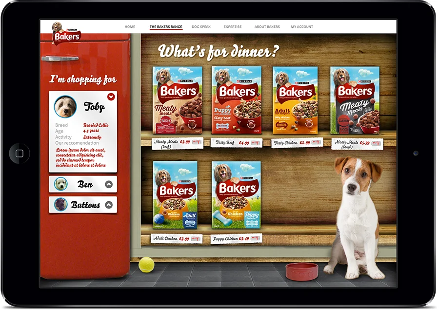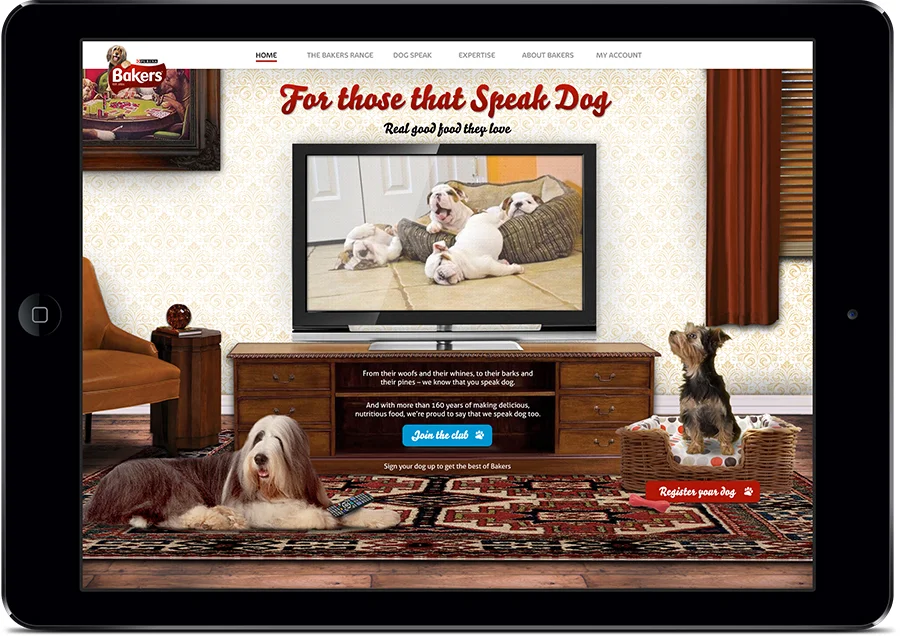 Our wholesome key visual depicts an active, happy and healthy Bakers dog that our audience can relate to.