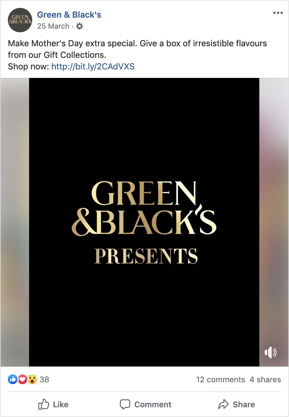 How do you make consumers on Facebook and Instagram aware of Green & Black’s gift collections by way of enticing them to buy one as a gift for Mother’s Day?