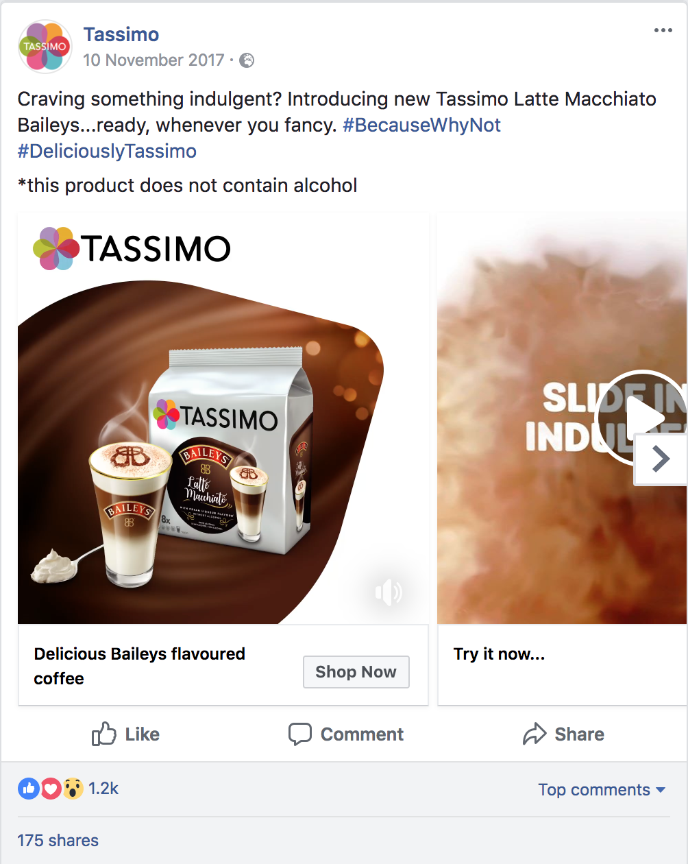 This launch post received an unprecedented 1,200 likes and 175 shares on facebook within days of launch (most of which was organic), making it one of Tassimo's most successful social posts to date.